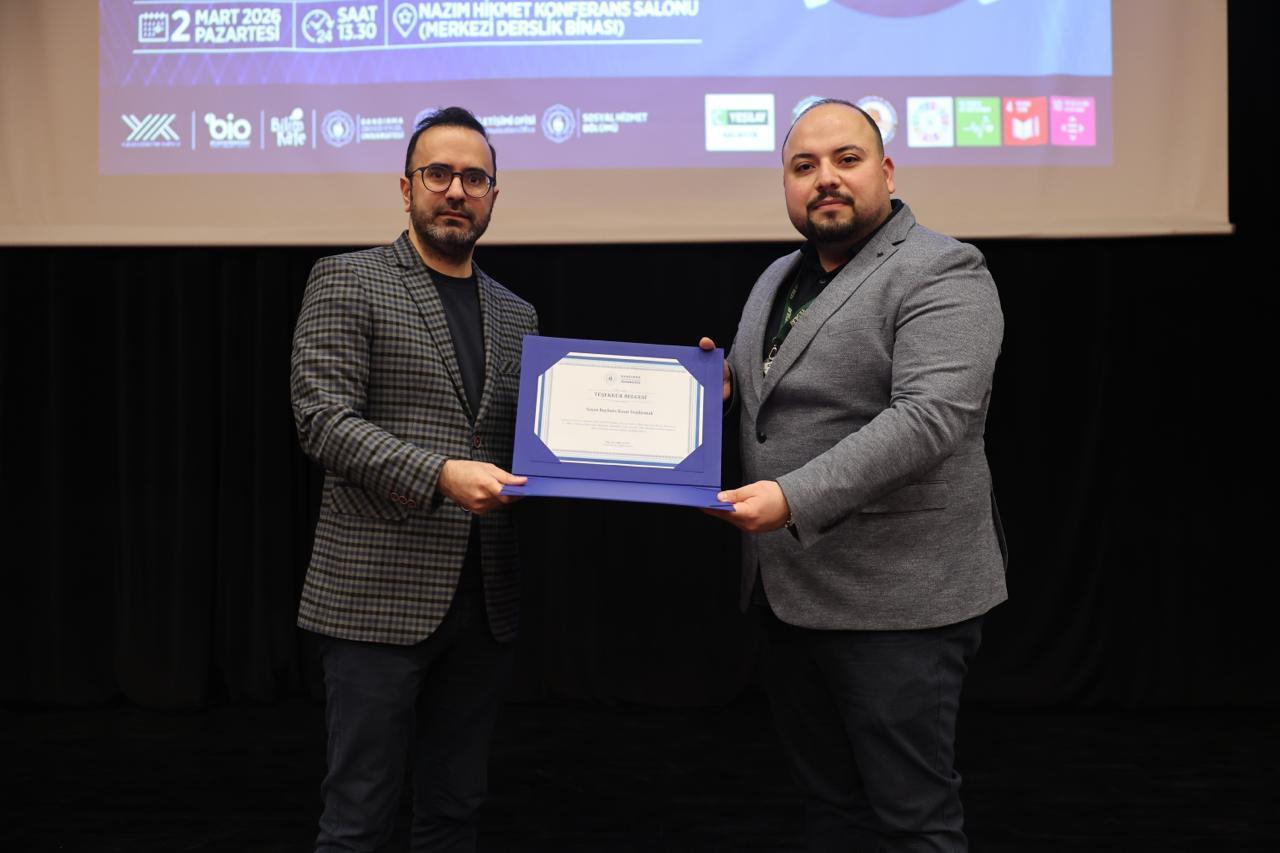 Program sonunda Sosyal Hizmet Bölüm Başkanımız Doç. Dr. Fatih Altun tarafından Baybars Kaan Yeşilırmak’a teşekkür belgesi takdim edildi. Etkinlik, katılımcılara teşekkür edilmesi ve sağlıklı, bağımlılıklardan uzak bir yaşam temennisinde bulunulmasının ardından sona erdi.
